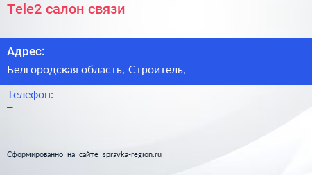 Tele2, салон связи по адресу Белгородская область, Строитель, в дальнейшем Организация, размещена в следующих категориях: