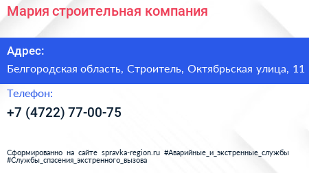 Мария, строительная компания по адресу Белгородская область, Строитель, Октябрьская улица, 11 в дальнейшем Организация, размещена в следующих категориях: