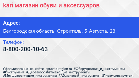 kari, магазин обуви и аксессуаров по адресу Белгородская область, Строитель, 5 Августа, 28 в дальнейшем Организация, размещена в следующих категориях: