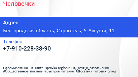 Человечки по адресу Белгородская область, Строитель, 5 Августа, 11 в дальнейшем Организация, размещена в следующих категориях: