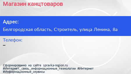 Магазин канцтоваров по адресу Белгородская область, Строитель, улица Ленина, 8а в дальнейшем Организация, размещена в следующих категориях: