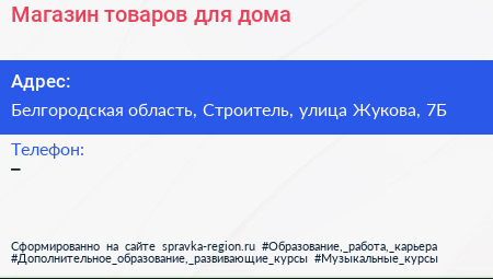 Магазин товаров для дома по адресу Белгородская область, Строитель, улица Жукова, 7Б в дальнейшем Организация, размещена в следующих категориях:
