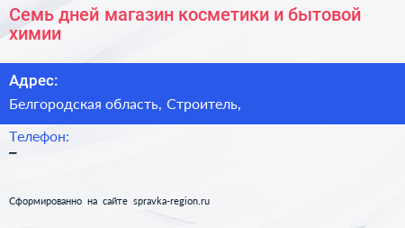 Семь дней, магазин косметики и бытовой химии по адресу Белгородская область, Строитель, в дальнейшем Организация, размещена в следующих категориях: