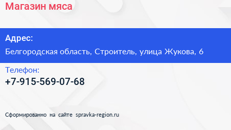 Магазин мяса по адресу Белгородская область, Строитель, улица Жукова, 6 в дальнейшем Организация, размещена в следующих категориях:
