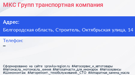МКС-Групп, транспортная компания по адресу Белгородская область, Строитель, Октябрьская улица, 14 в дальнейшем Организация, размещена в следующих категориях: