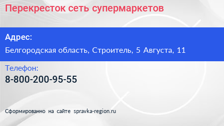 Перекресток, сеть супермаркетов по адресу Белгородская область, Строитель, 5 Августа, 11 в дальнейшем Организация, размещена в следующих категориях: