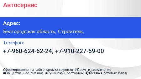Автосервис по адресу Белгородская область, Строитель, в дальнейшем Организация, размещена в следующих категориях: