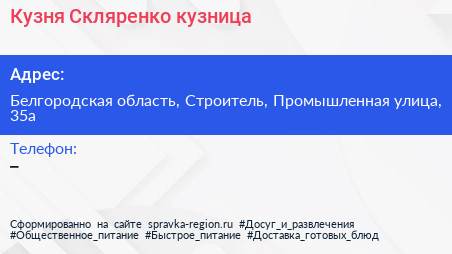 Кузня Скляренко, кузница по адресу Белгородская область, Строитель, Промышленная улица, 35а в дальнейшем Организация, размещена в следующих категориях: