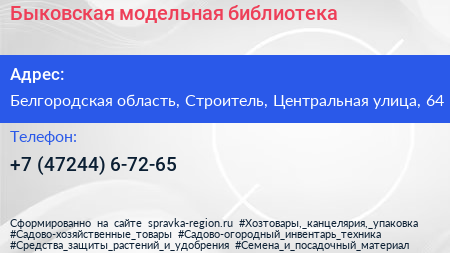 Быковская модельная библиотека по адресу Белгородская область, Строитель, Центральная улица, 64 в дальнейшем Организация, размещена в следующих категориях: