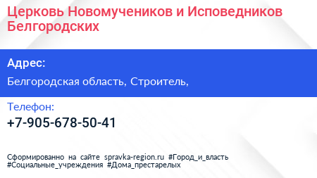 Церковь Новомучеников и Исповедников Белгородских по адресу Белгородская область, Строитель, в дальнейшем Организация, размещена в следующих категориях: