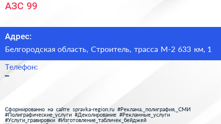 АЗС №99 по адресу Белгородская область, Строитель, трасса М-2 633 км, 1 в дальнейшем Организация, размещена в следующих категориях: