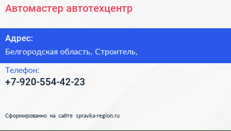 Автомастер, автотехцентр по адресу Белгородская область, Строитель, в дальнейшем Организация, размещена в следующих категориях:
