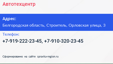 Автотехцентр по адресу Белгородская область, Строитель, Орловская улица, 3 в дальнейшем Организация, размещена в следующих категориях: