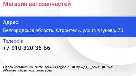 Магазин автозапчастей по адресу Белгородская область, Строитель, улица Жукова, 7Б в дальнейшем Организация, размещена в следующих категориях: