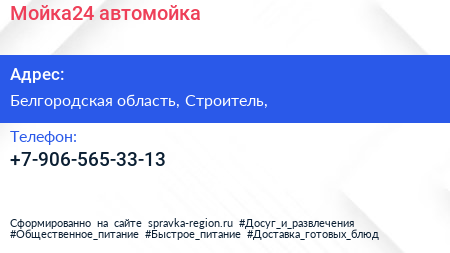 Мойка24, автомойка по адресу Белгородская область, Строитель, в дальнейшем Организация, размещена в следующих категориях: