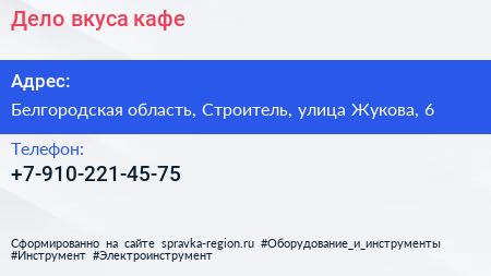 Дело вкуса, кафе по адресу Белгородская область, Строитель, улица Жукова, 6 в дальнейшем Организация, размещена в следующих категориях: