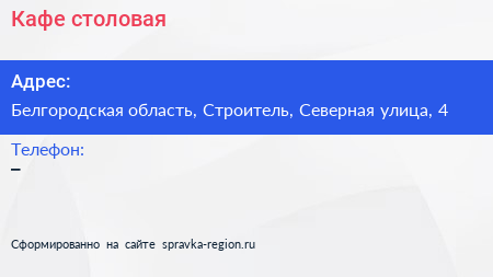 Кафе-столовая по адресу Белгородская область, Строитель, Северная улица, 4 в дальнейшем Организация, размещена в следующих категориях: