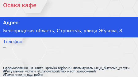 Осака, кафе по адресу Белгородская область, Строитель, улица Жукова, 8 в дальнейшем Организация, размещена в следующих категориях: