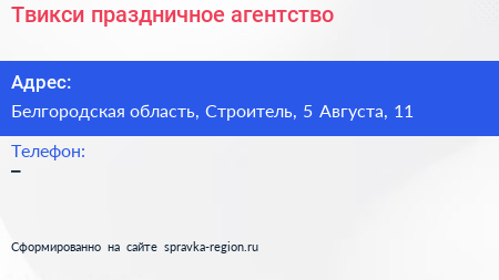 Твикси, праздничное агентство по адресу Белгородская область, Строитель, 5 Августа, 11 в дальнейшем Организация, размещена в следующих категориях: