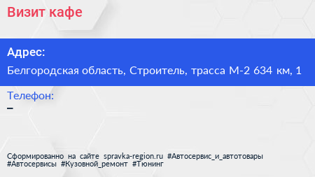 Визит, кафе по адресу Белгородская область, Строитель, трасса М-2 634 км, 1 в дальнейшем Организация, размещена в следующих категориях: