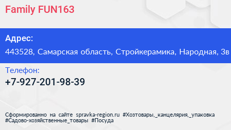 Family FUN163 по адресу 443528, Самарская область, Стройкерамика, Народная, 3в в дальнейшем Организация, размещена в следующих категориях: