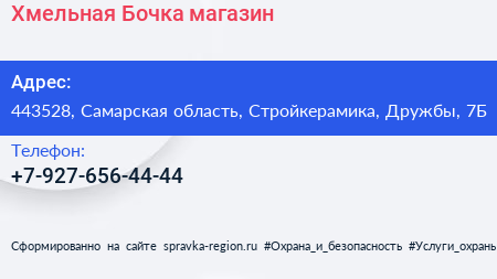 Хмельная Бочка, магазин по адресу 443528, Самарская область, Стройкерамика, Дружбы, 7Б в дальнейшем Организация, размещена в следующих категориях: