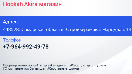 Hookah Akira, магазин по адресу 443528, Самарская область, Стройкерамика, Народная, 14 в дальнейшем Организация, размещена в следующих категориях: