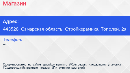 Магазин по адресу 443528, Самарская область, Стройкерамика, Тополей, 2а в дальнейшем Организация, размещена в следующих категориях: