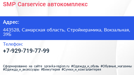 SMP-Carservice, автокомплекс по адресу 443528, Самарская область, Стройкерамика, Вокзальная, 39Б в дальнейшем Организация, размещена в следующих категориях: