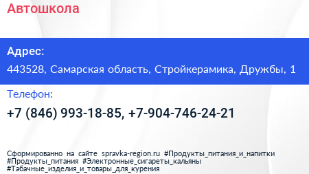 Автошкола по адресу 443528, Самарская область, Стройкерамика, Дружбы, 1 в дальнейшем Организация, размещена в следующих категориях:
