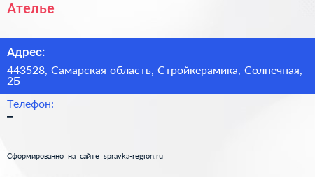 Ателье по адресу 443528, Самарская область, Стройкерамика, Солнечная, 2Б в дальнейшем Организация, размещена в следующих категориях: