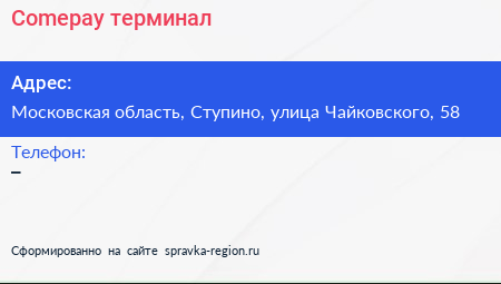 Comepay, терминал по адресу Московская область, Ступино, улица Чайковского, 58 в дальнейшем Организация, размещена в следующих категориях:
