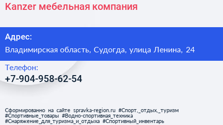 Kanzer, мебельная компания по адресу Владимирская область, Судогда, улица Ленина, 24 в дальнейшем Организация, размещена в следующих категориях: