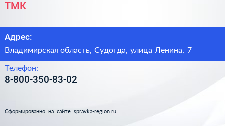 ТМК по адресу Владимирская область, Судогда, улица Ленина, 7 в дальнейшем Организация, размещена в следующих категориях: