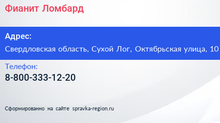 Фианит-Ломбард по адресу Свердловская область, Сухой Лог, Октябрьская улица, 10 в дальнейшем Организация, размещена в следующих категориях:
