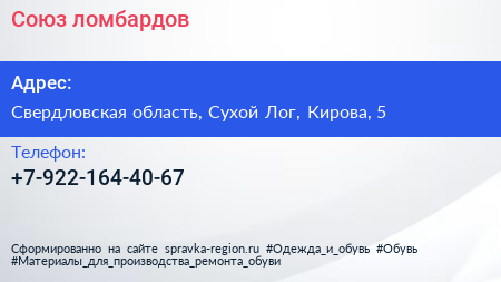 Союз ломбардов по адресу Свердловская область, Сухой Лог, Кирова, 5 в дальнейшем Организация, размещена в следующих категориях: