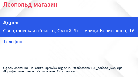 Леопольд, магазин по адресу Свердловская область, Сухой Лог, улица Белинского, 49 в дальнейшем Организация, размещена в следующих категориях: