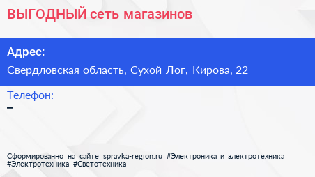 ВЫГОДНЫЙ, сеть магазинов по адресу Свердловская область, Сухой Лог, Кирова, 22 в дальнейшем Организация, размещена в следующих категориях: