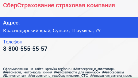 СберСтрахование, страховая компания по адресу Краснодарский край, Супсех, Шаумяна, 79 в дальнейшем Организация, размещена в следующих категориях: