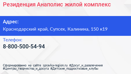 Резиденция Анаполис, жилой комплекс по адресу Краснодарский край, Супсех, Калинина, 150 к19 в дальнейшем Организация, размещена в следующих категориях: