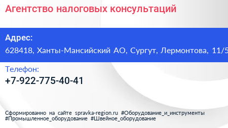 Агентство налоговых консультаций по адресу 628418, Ханты-Мансийский АО, Сургут, Лермонтова, 11/5 в дальнейшем Организация, размещена в следующих категориях:
