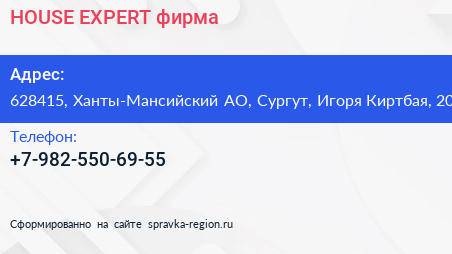 HOUSE-EXPERT, фирма по адресу 628415, Ханты-Мансийский АО, Сургут, Игоря Киртбая, 20 в дальнейшем Организация, размещена в следующих категориях: