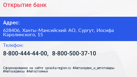 Открытие, банк по адресу 628406, Ханты-Мансийский АО, Сургут, Иосифа Каролинского, 15 в дальнейшем Организация, размещена в следующих категориях: