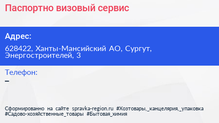 Паспортно-визовый сервис по адресу 628422, Ханты-Мансийский АО, Сургут, Энергостроителей, 3 в дальнейшем Организация, размещена в следующих категориях:
