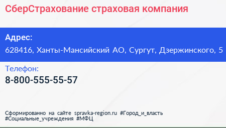 СберСтрахование, страховая компания по адресу 628416, Ханты-Мансийский АО, Сургут, Дзержинского, 5 в дальнейшем Организация, размещена в следующих категориях:
