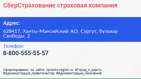 СберСтрахование, страховая компания по адресу 628417, Ханты-Мансийский АО, Сургут, бульвар Свободы, 2 в дальнейшем Организация, размещена в следующих категориях: