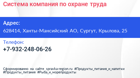 Система, компания по охране труда по адресу 628414, Ханты-Мансийский АО, Сургут, Крылова, 25 в дальнейшем Организация, размещена в следующих категориях: