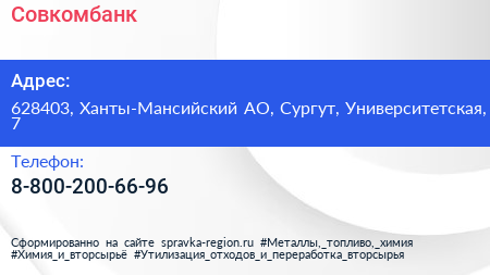 Совкомбанк по адресу 628403, Ханты-Мансийский АО, Сургут, Университетская, 7 в дальнейшем Организация, размещена в следующих категориях: