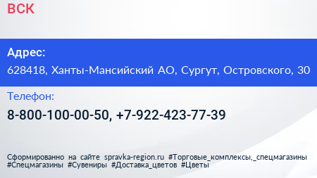 ВСК по адресу 628418, Ханты-Мансийский АО, Сургут, Островского, 30 в дальнейшем Организация, размещена в следующих категориях: