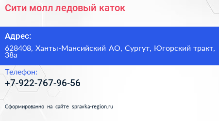 Сити-молл, ледовый каток по адресу 628408, Ханты-Мансийский АО, Сургут, Югорский тракт, 38а в дальнейшем Организация, размещена в следующих категориях: